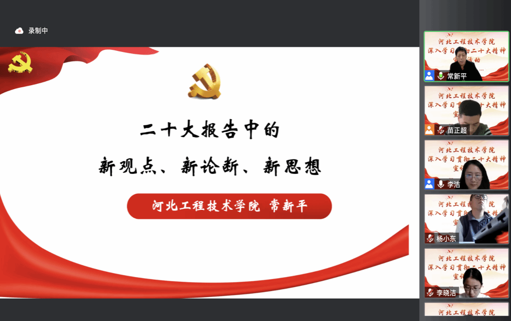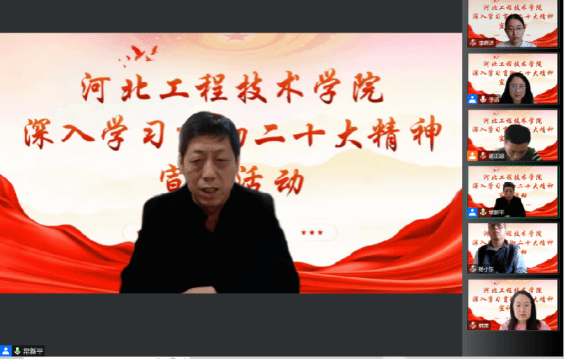 为深入学习宣传贯彻党的二十大精神,做好集中宣讲和学习研讨工作,河北工程技术学院党委书记常新平于12月8日作题为“二十大报告中的新观点、新论断、新思想”的主题报告。
