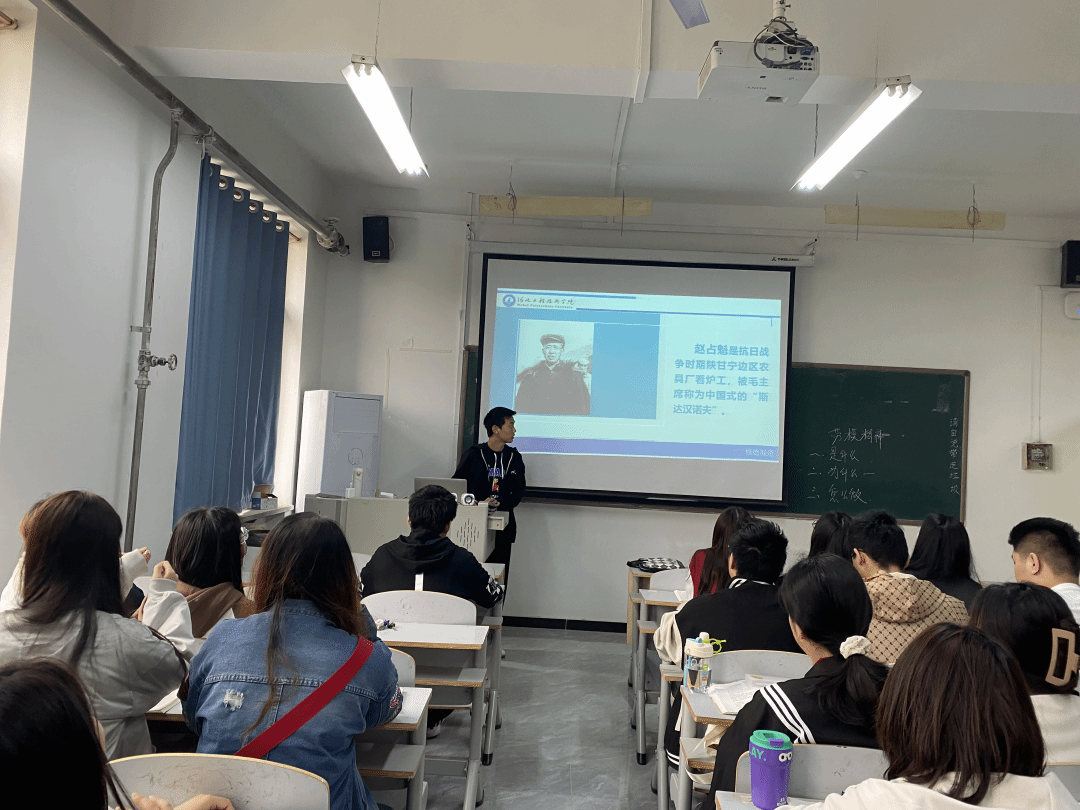 2022年4月27日,习近平总书记在致首届大国工匠交流大会的贺信中强调,技术工人队伍是支撑中国制造、中国创造的重要力量。我国工人阶级和广大劳动群众要大力弘扬劳模精神、劳动精神、工匠精神,适应当今世界科技革命和产业变革的需要。为充分发挥劳动模范的示范引领作用,引导新时代大学生弘扬和传承劳模精神,激励学生坚定理想信念、树立正确劳动观,积极营造劳动光荣的社会氛围和精益求精的敬业风气,艺术与传媒学院思政教研室于4月11日在行政楼509开展了“讲好劳模故事,弘扬劳模精神”先进事迹我来讲活动。