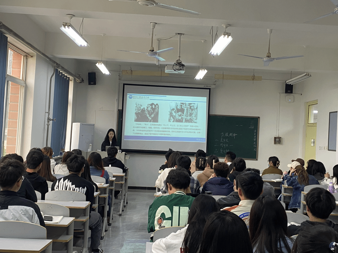 活动过程中,由学生代表分别上台为同学们讲述了在革命战争年代、新中国成立后、改革开放历史新时期及进入新时代以来,在不同时代涌现出的劳动模范代表的先进事迹。